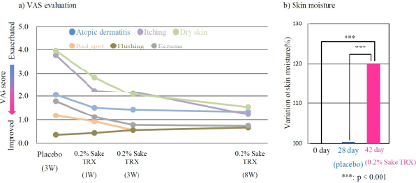 Bioredoxyl là dịch lọc từ rượu sake gạo lên men truyền thống, chứa hàm lượng TRX cô đặc cao. Thành phần sake TRX cô đặc này cho thấy tác dụng chống oxy hóa, chống stress và kháng viêm mạnh mẽ, đồng thời mang lại các lợi ích như chống lão hóa, giảm nhăn, làm giảm tình trạng ửng đỏ da, dưỡng ẩm và hỗ trợ cải thiện các triệu chứng viêm da cơ địa.