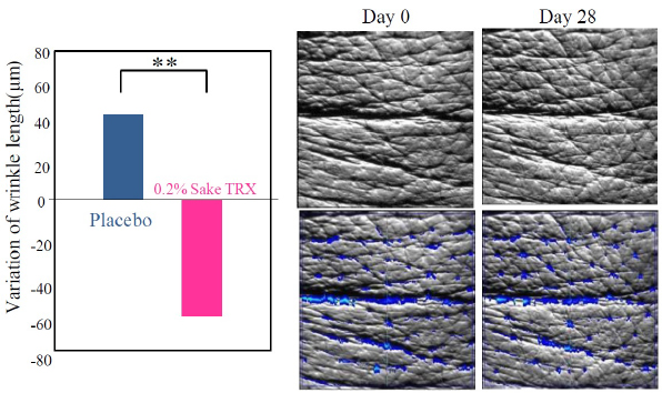 Công thức chứa 0,2% Bioredoxyl được thoa lên da trong 4 tuần, ngày 2 lần. Kết quả cho thấy độ sâu nếp nhăn giảm rõ rệt