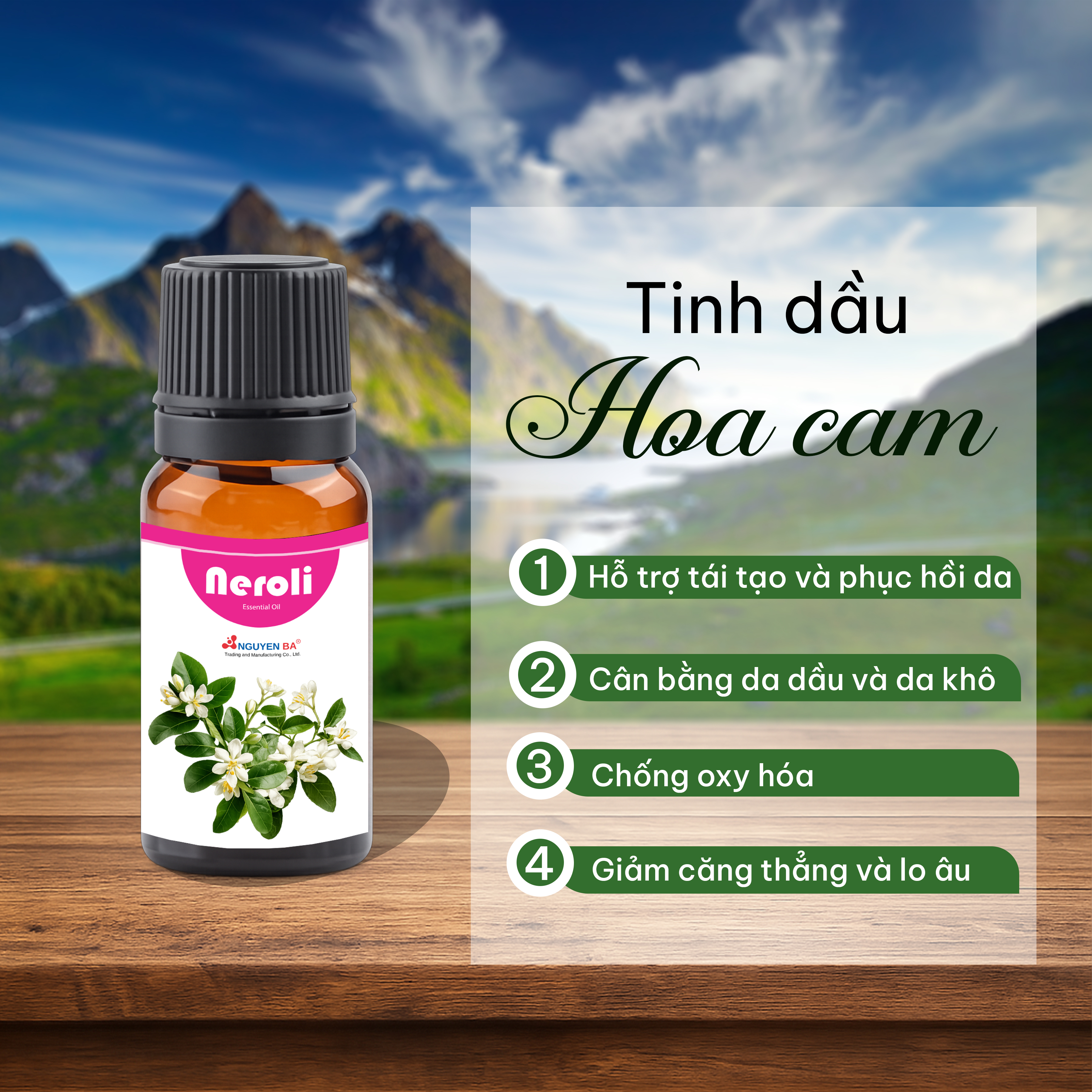 Nguồn gốc nguyên liệu khác nhau có thể tạo nên sự khác biệt rõ rệt về hương thơm và trải nghiệm cảm quan của tinh dầu Neroli. Tinh dầu Hoa cam của Nguyễn Bá mang sắc thái hương hoa trắng – citrus tươi sáng, thanh sạch và tinh tế, đem lại cảm giác dễ chịu, thư giãn và phù hợp với các công thức mỹ phẩm theo định hướng cao cấp.