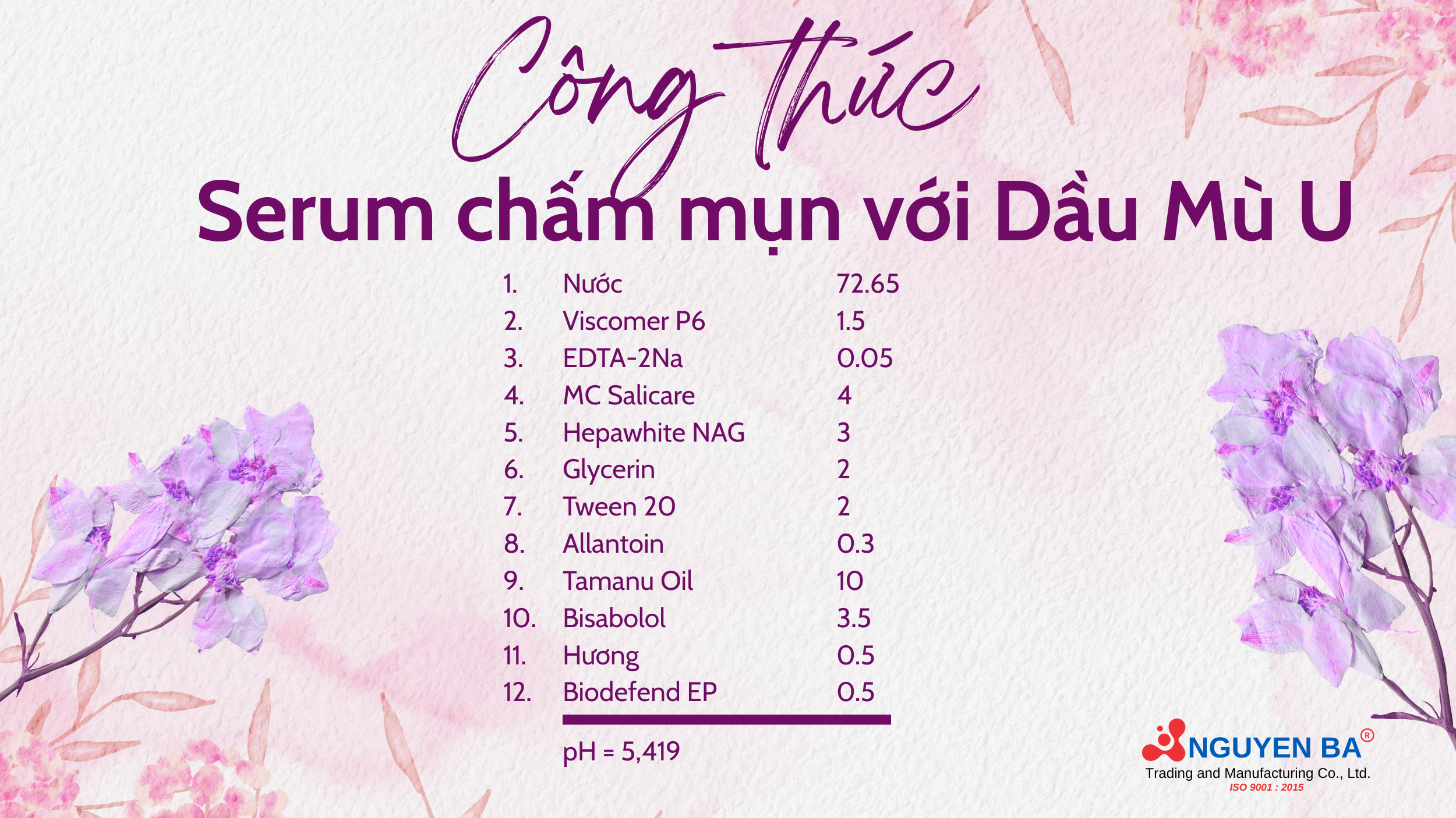Dầu mù u (Tamanu Oil) từ lâu đã được biết đến là nguyên liệu thiên nhiên hỗ trợ trị mụn, giảm sưng viêm và cải thiện thâm sẹo. Thay vì chỉ dùng đơn lẻ, việc ứng dụng dầu mù u trong công thức serum giúp hoạt chất thẩm thấu sâu hơn, mang lại hiệu quả đồng bộ và rõ rệt cho da mụn.